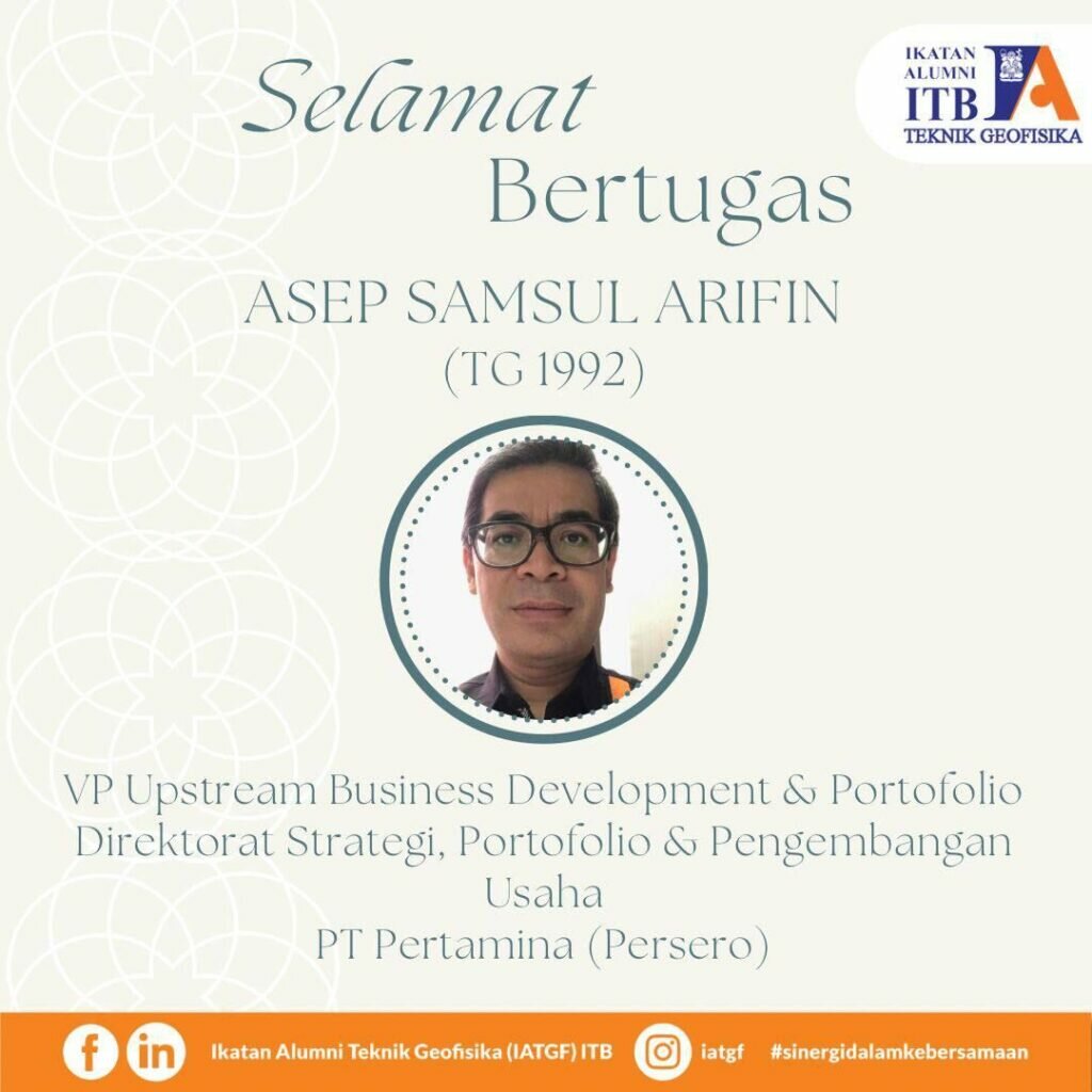 Sekali lagi kami dari Ikatan Alumni Teknik Geofisika (IATGF) mengucapkan selamat kepada saudara Muharram yang berhasil menjadi Direktur Eksplorasi PT. Pertamina Hulu Energi.