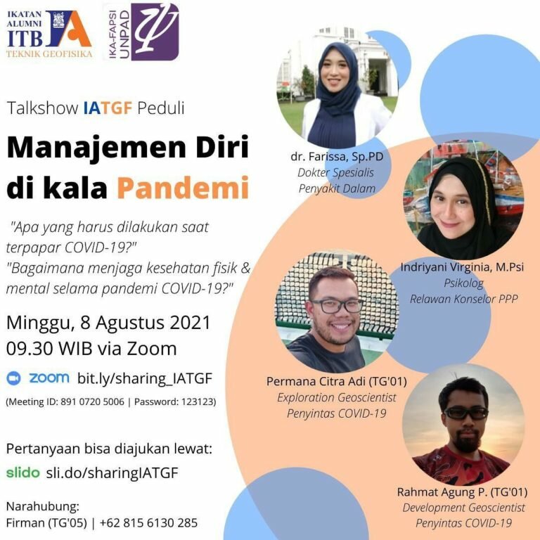 Sebuah acara yang diselenggarakan IATGF bekerja sama dengan IKA-FAPSI UNPAD membahas tentang kesehatan baik itu fisik atau mental dan kegiatan yang dapat dilakukan untuk menjaga nya selama pandemi COVID-19.